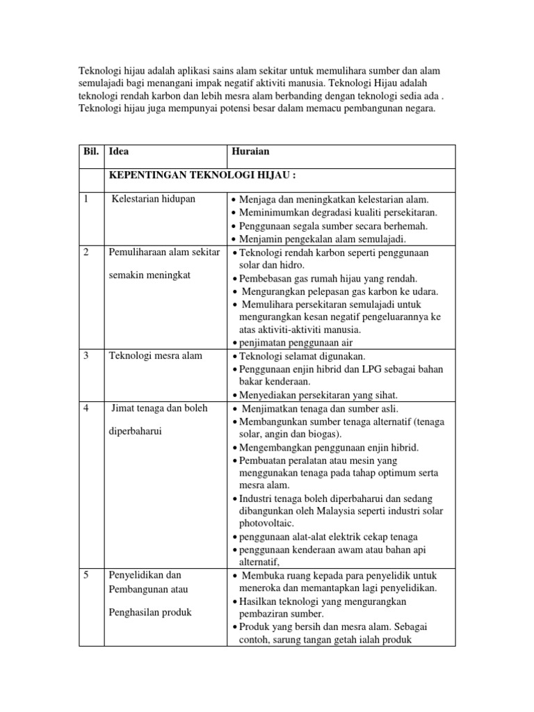 Kepentingan Teknologi Hijau Dan Usaha Membangunkannya Pdf